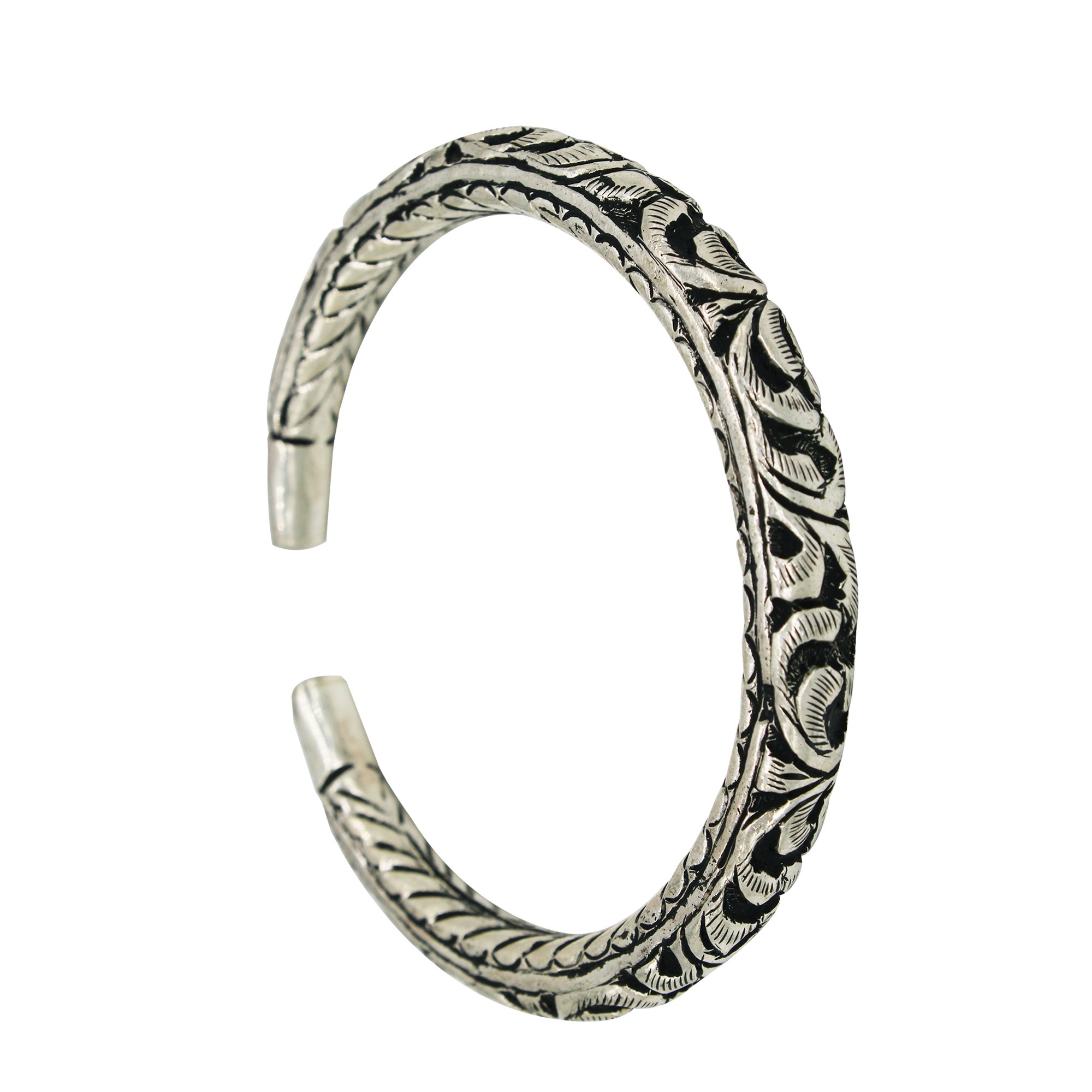 925 Pure Silver Oxidized Sterling Silver Hollow Tribal Kada For Men and Boys ( Nakkashi Chadi Kada )