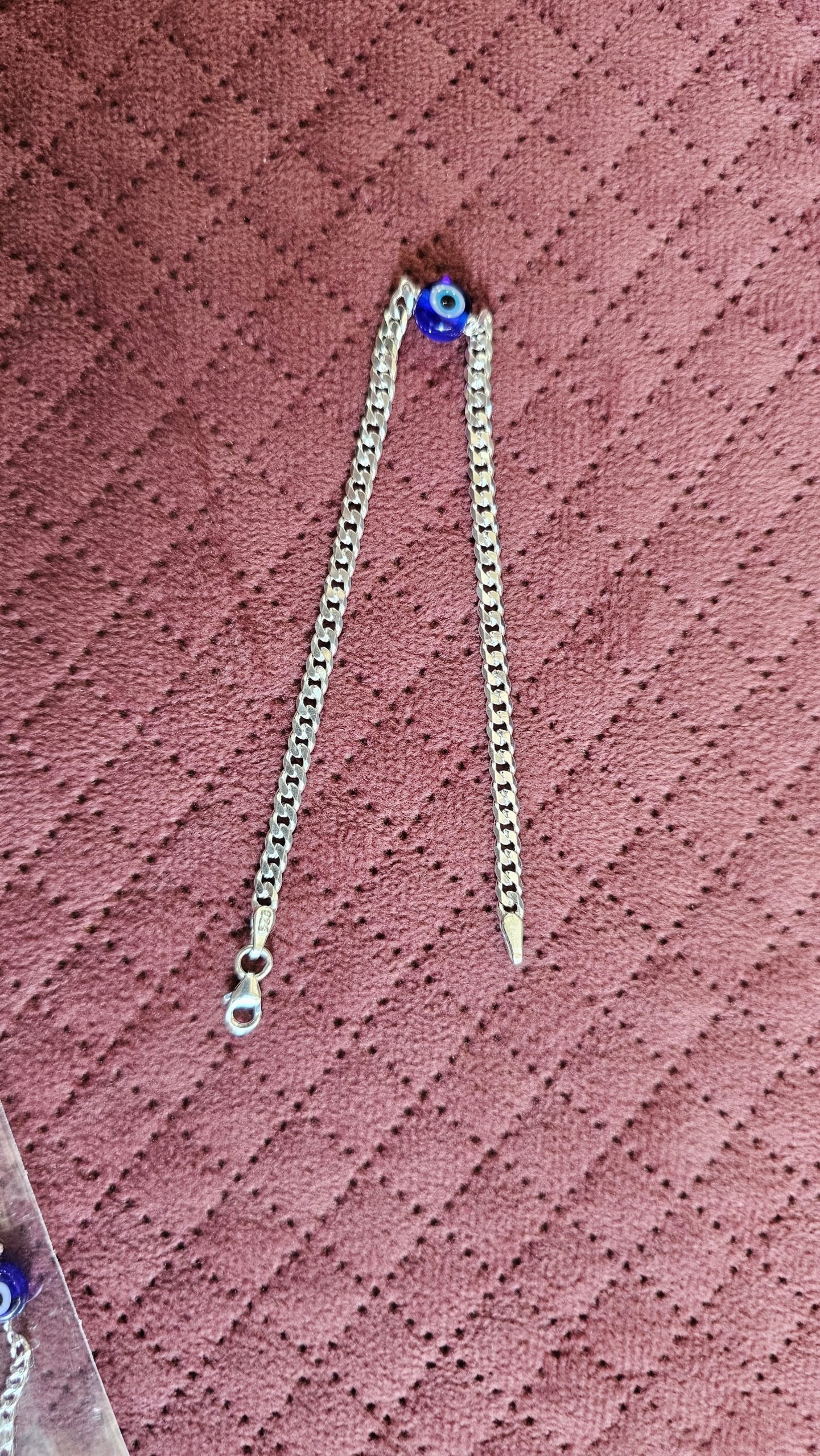 Evil Eye Silver Bracelet with a sleek sterling silver chain in a chic Boho style. Designed with a minimalist eye charm at the center, this bracelet is believed to protect against negativity while adding elegance to your look. Perfect for everyday wear or as a thoughtful gift.