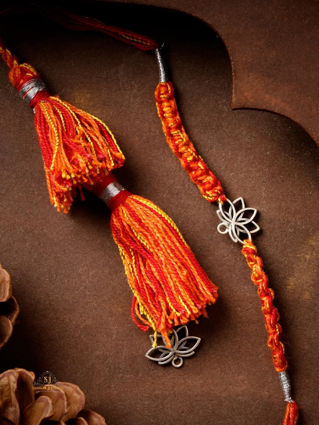 “SJ SHUBHAM JEWELLERS 925 Sterling Silver Lotus Design Handmade Rakhi Set for Brother, Silver Rakhis, Raksha Bandhan Gift (Lumba Rakhi For Bhabhi)”