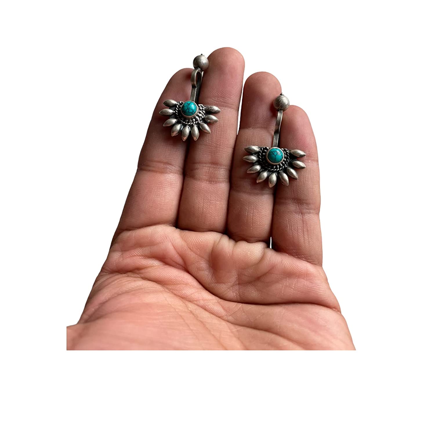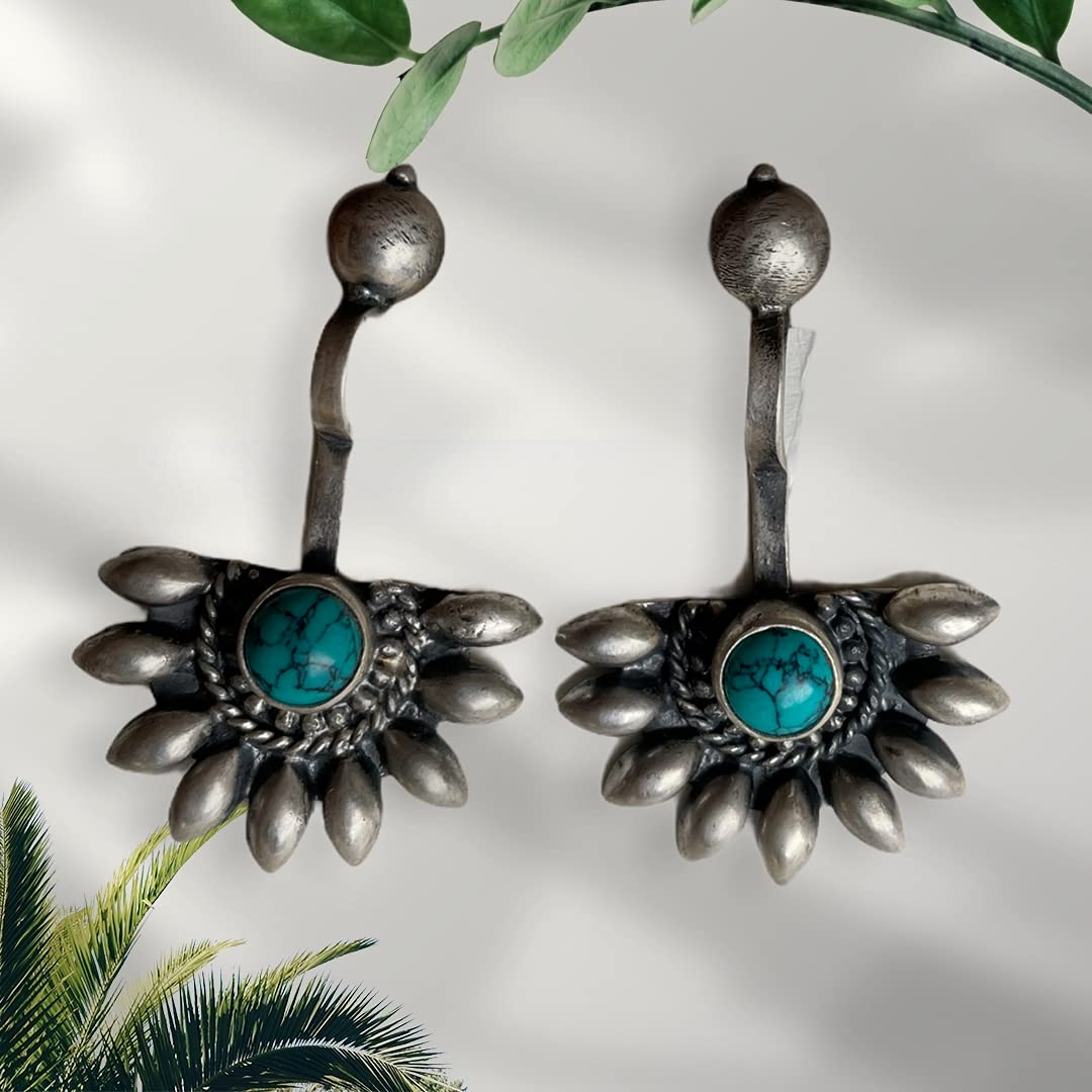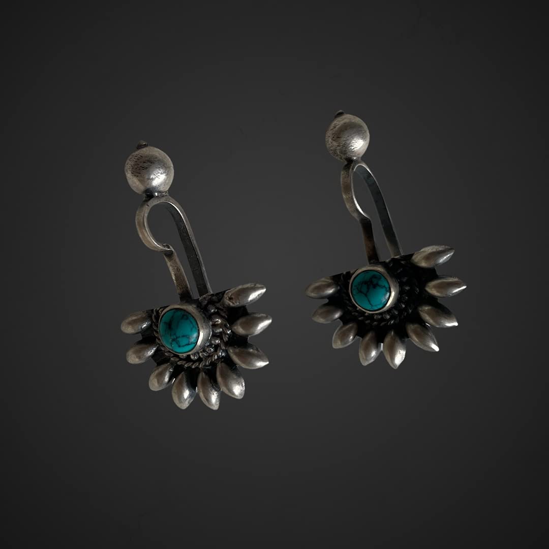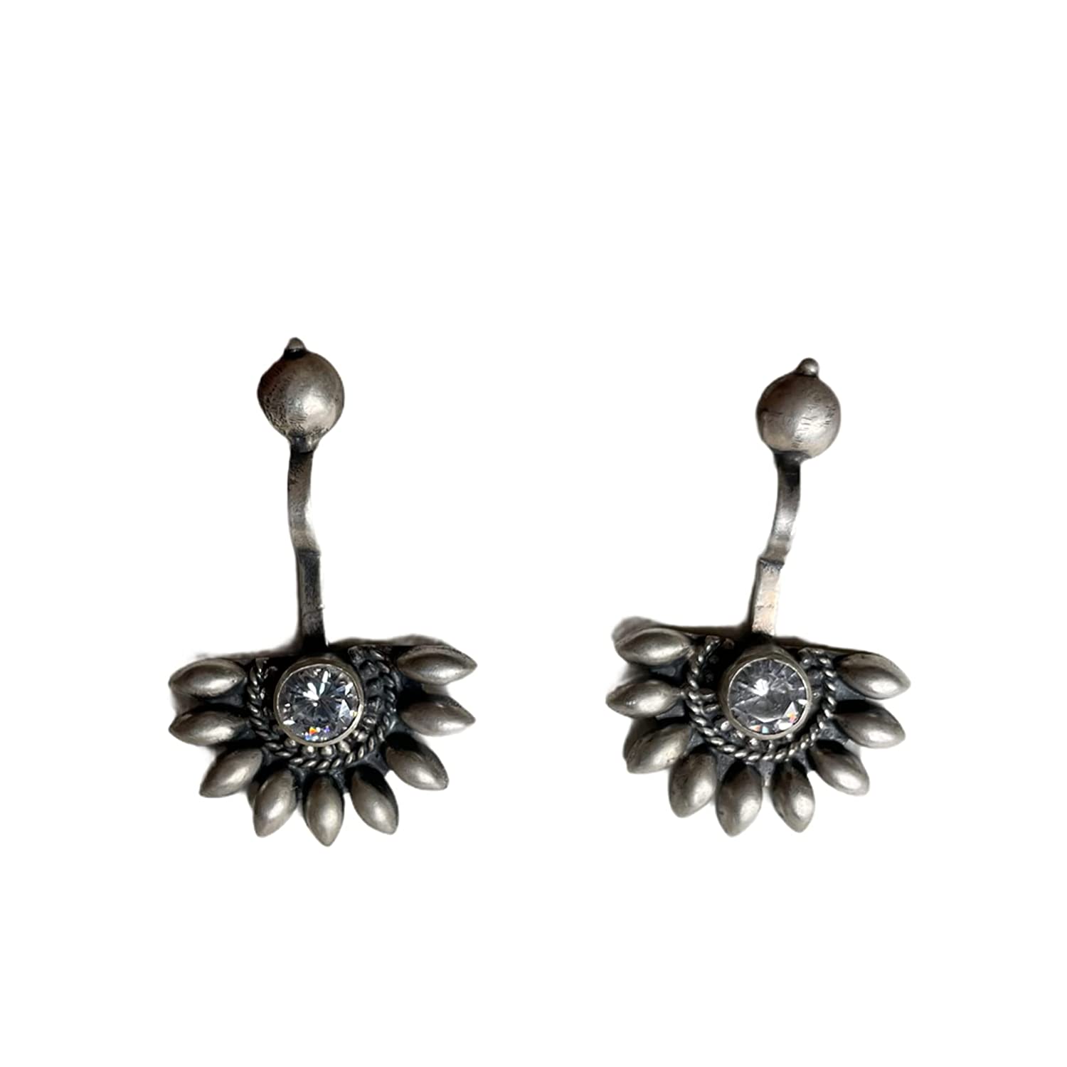 1 review for SJ SHUBHAM JEWELLERS 925 Sterling Silver Oxidised Designer Tribal Upper Ear Bugadi Clip Earrings for Women/Girls With White CZ