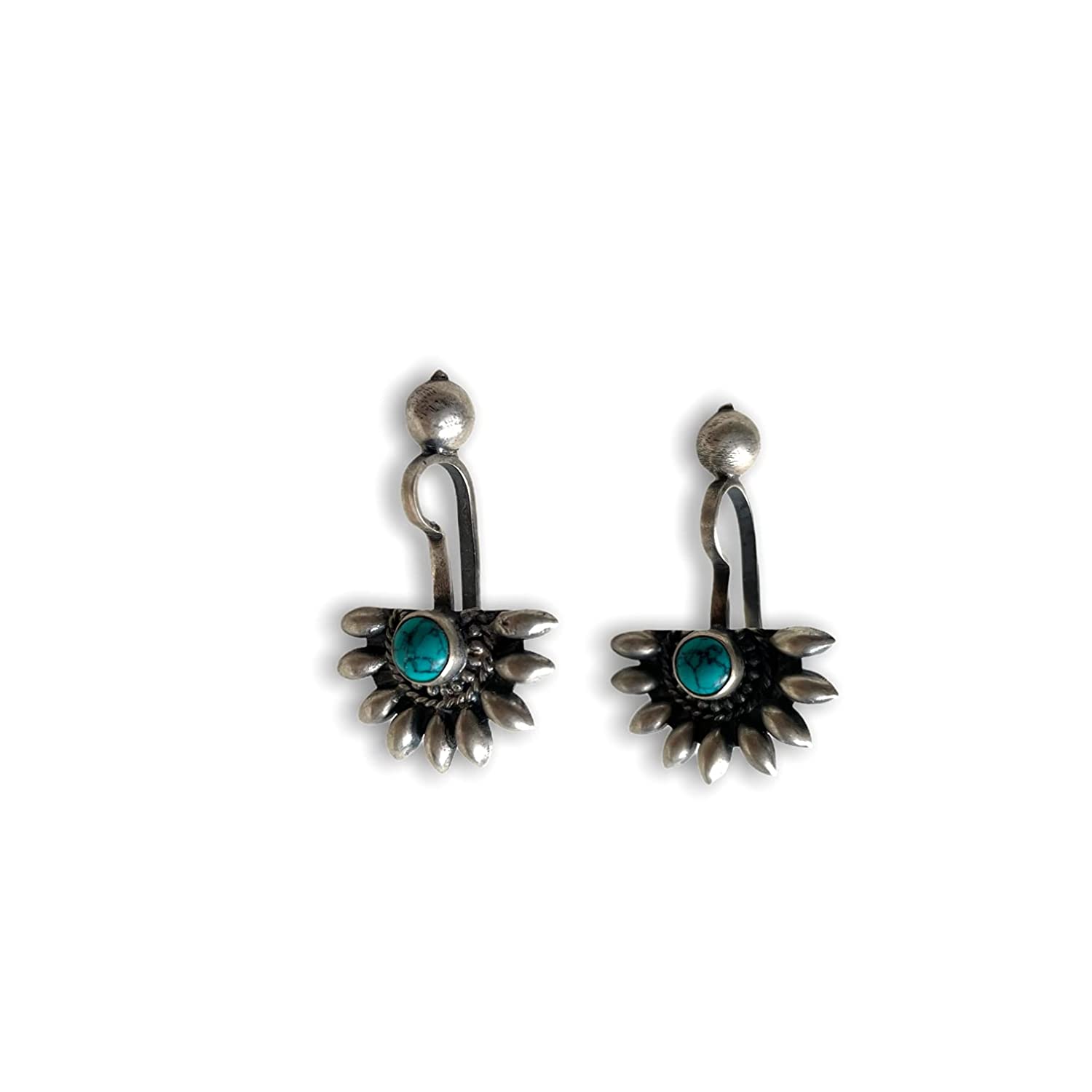 SJ SHUBHAM JEWELLERS 925 Sterling Silver Oxidised Designer Tribal Upper Ear Bugadi Clip Earrings for Women/Girls With White CZ