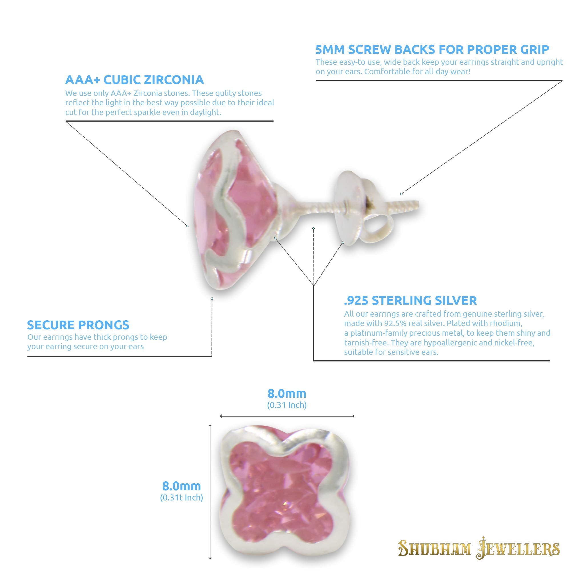• An Elegant Single Stone Cubic Zirconia Solitaire Brilliant cut studs made in 925 Sterling Silver with threaded Screw for durability & strength.