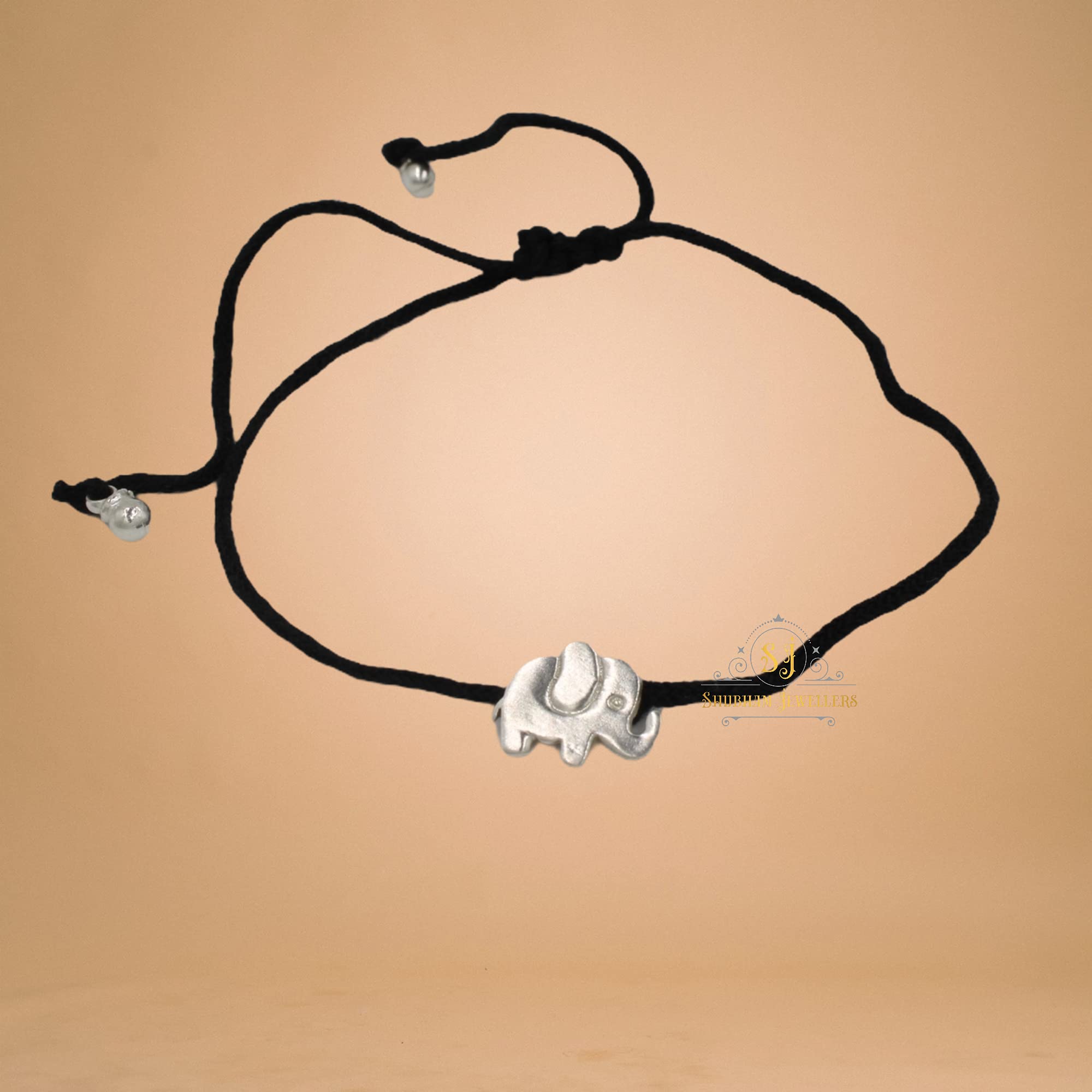 - Silver Elephant charm is strung in fine finish black cotton thread. Made in sterling silver and cotton thread, this anklet/Nazariya/Payal is durable and absolutely skin friendly; perfect for everyday wear.