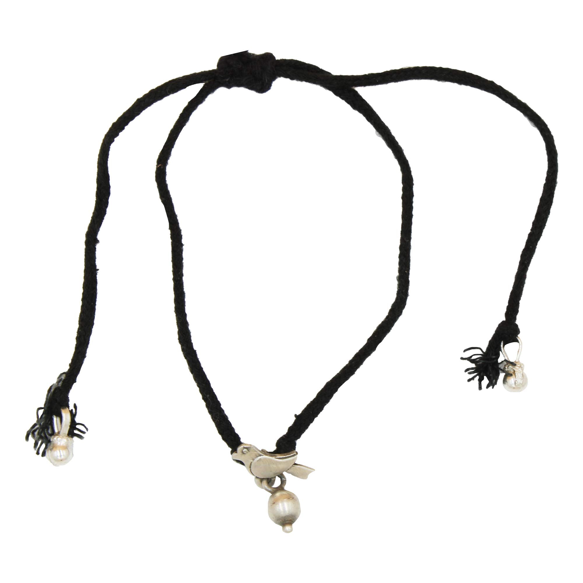 - Silver Bird charm is strung in fine finish black cotton thread. Made in sterling silver and cotton thread, this anklet/Nazariya/Payal is durable and absolutely skin friendly; perfect for everyday wear.